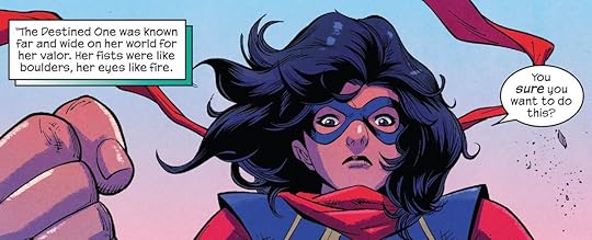 What I've always liked about Ms Marvel, is that her stories were smaller, more based locally in New Jersey. She instantly loses that charm when she suddenly becomes The One on a different planet.