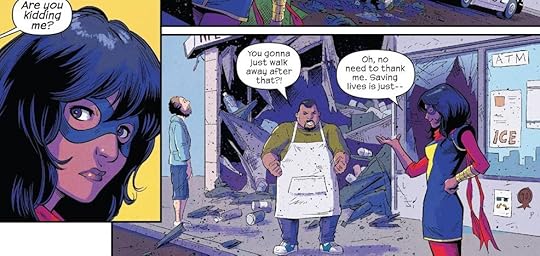 Despite this rather blatant... let's be generous and call it a homage... I really enjoyed this first volume in the new rebooted Ms. Marvel series, with the mostly-new creative team. Saladin Ahmed really seems to have a handle on these characters and the art team gel really well and are knocking it out of the park.