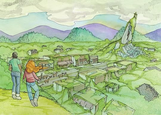 This is a quiet family tale told in a future in peril. I thought that the characters were really well established and the father/daughter dynamic was really well done and realistic as well. I felt like I immediately cared about this family and could understand both sides in the argument, which is difficult to do. The story was very grounded and small considering the scope of the setting, which set it apart from other similar premises I've seen. The art was lovely and so unique in it's watercolor nature.