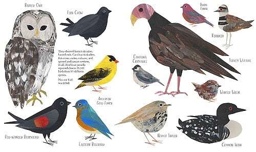 I enjoyed the colorful and accurate collage art style, and I especially loved when the author introduces different types of birds one by one. What a great idea to include an invitation to become of 'birder', someone helping to count bird, or to become a member of one of many other organizations that work on the preservation of birds! From beginning to end, this is a very well crafted book!
