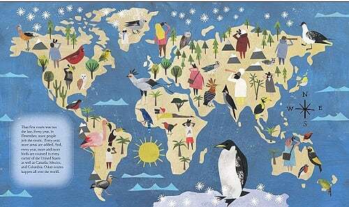 What can you do to help endangered animals and make a positive change in our environment? Get counting! Counting Birds is a beautifully illustrated book that introduces kids to the idea of bird counts and bird watches . Along the way, they will learn about Frank Chapman, an ornithologist who wanted to see the end of the traditional Christmas bird hunt, an event in which people would shoot as many birds as possible on Christmas. Chapman, using his magazine Bird-Lore to promote the idea of counting birds, founded the first annual bird count .