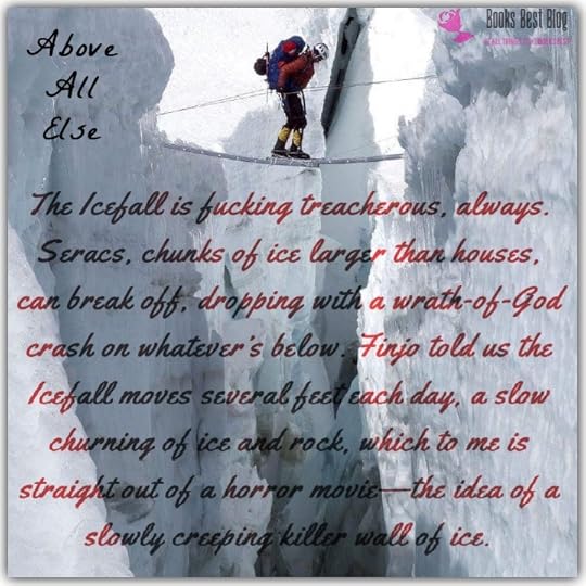 ABOVE ALL ELSE is one of those rare books that tackle a very difficult subject, especially in YA. Two teens who have been best friends for life, who dream of adding Mount Everest to their checklist of mountains to summit, and fight against past trauma and their growing attraction to each other.