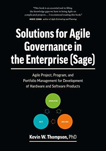 “This book is an essential tool in filling the knowledge gaps we have in being Agile on complicated projects. The other way to fill these gaps is through expensive and painful trial and error. From now on, I’ll recommend reading this book instead.”Mike Cohn, Mountain Goat SoftwareSolutions for Agile Governance in the Enterprise (SAGE) is the essential guide to understanding, implementing, and perfecting Agile product development throughout your organization, from one of the leading experts in software and hardware project management and planning.“Dr. Kevin Thompson is a recognized thought leader who has researched and written extensively on all things Agile. In his newest book, he describes how Agile can be used at scale for complex products (those that include software and hardware), programs, and portfolios. I highly recommend this book to team members and executive leaders who want to apply Agile throughout their organizations and learn from one of the true masters of the field.”John Carter, principal, TCGen Inc.Author, Innovate Products Faster“Dr. Thompson understands the differences and similarities between software and hardware, and is moving Agile/Scrum methods beyond their software origins. He paints the clearest picture of that world and all its moving parts that I have seen.”David G. Ullman, emeritus professor of mechanical design and ASME Life FellowAuthor, The Mechanical Design Process“Sage presents an overarching vision of integrating Agile throughout an organization. Regardless of your familiarity with Agile, or your role within the organization, you will find valuable insights on how to turn your project, business unit, or company into an Agile powerhouse.”James Kolozs, staff systems engineer, Syncroness“This book explores in depth the issues surrounding scaling Agile development, including many recommendations based on the author’s experience.”Jeff McKenna, Certified Scrum Trainer