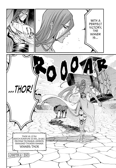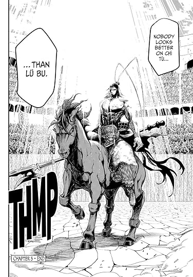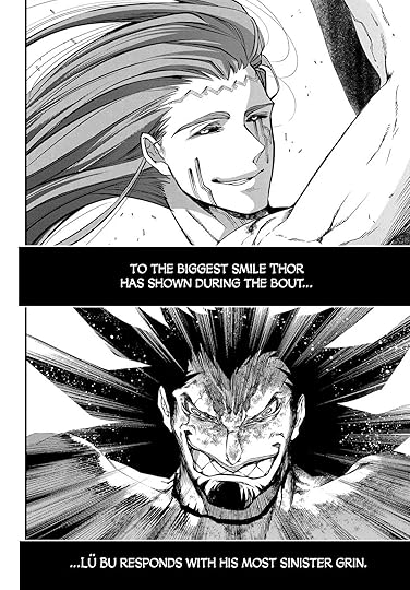 En éste tomo vemos el final de la primera pelea el cual está bastante bien, se nos hace creer que Lu Bu es capaz de derrotar al dios con su técnica mas fuerte para ser completamente desmembrado. (Ta chido). La despedida de sus contemporáneos también le da un toque suculento a la despedida de la primera pelea.