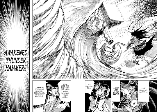 LOVE THIS ONE. the ending of the thor fight is so cool and holy shit. some of the panels at the end of that fight went SO HARD. like things that can only be shown through manga so loved that. sadly thor won and the humans lost …. BUT THEN ITS TIME. BABYGIRL ADAM ‼️‼️ and he’s hotter in the manga??? was not expecting that but i mean adam vs zeus - MWAH. great matchup