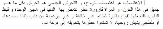 الاغتصاب هو اغتصاب للروح والتحرش الجنسى هو تحرش لكل ما هو جميل والمرأة قارورة عطر تتعطر بها الدنيا فى هجير الوحدة وقيظ اليأس فلنجعلها تفوح ناشرة شذاها غير خائفة وغير مرعوبة من ذئب يتلذذ بجسدها أو بلطجى ينهش روحــها لا تمنعـوا عطرها بتحويله الى بركة دمــاء