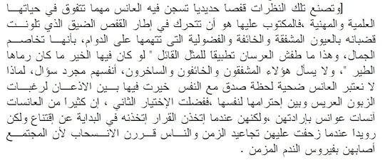 وعلمني الكتاب أيضاً أن الختان شأنه كشأن أي فكرة متخلفة يصدرها المجتمع، يربطها بمفهوم آخر لترسيخها بعقول الناس وجعلهم يتقبلونها دون نقاش أو تفكير ..