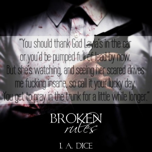 Broken Rules is author I.A Dice’s FIRST release and to say I’m surprised is an understatement! For a new author the plot, the pace, as well as character depth was outstanding!