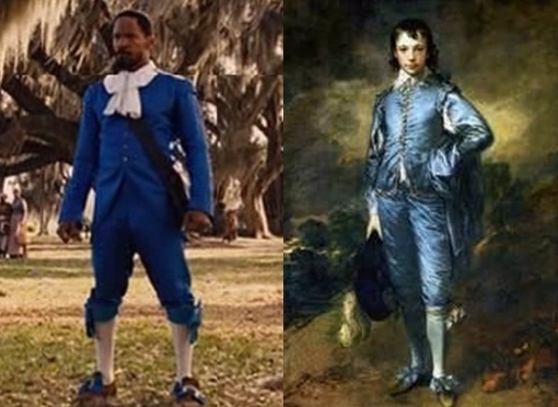 Tarantino, a great lover of cinema, tends to pastiche genres to the point of parody. In Django, he does a tongue-in-cheek pastiche of the typical Western movie, right down to the folksy theme song and hero-silhouetted-on-a prancing-horse, that almost seems to make it a parody to the point of mockery.