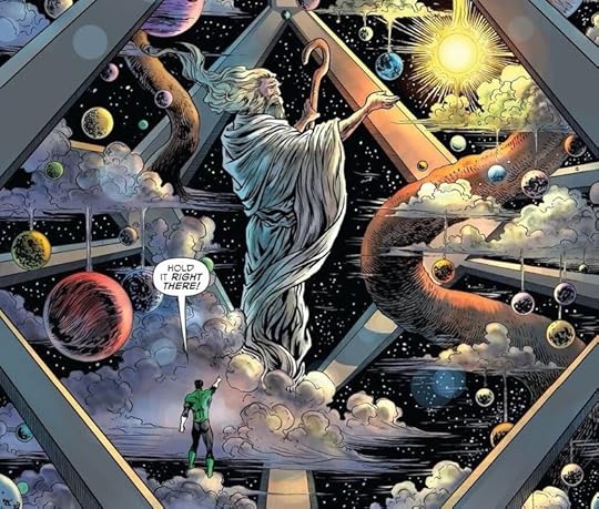 Hal's power level also seems way boosted here. He was always really strong (he does, after all, wield the most powerful weapon in the universe), but here he pretty much crushes any adversary with no problem and even challenges gods. This version of Hal Jordan would probably give Marvel's Galactus a run for his money. I actually really liked this, because Morrison then has to find problems for Hal to solve that can't simply be punched.
