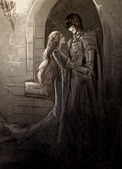 And then, soon enters the third wheel, Arnaud de Montsalvy, brother to Michel and a confirmed fool of a Took. He's found half-dead by Catherine's party on their way back home from the procession, is brought to an inn to be cured by the most farcical Muslim doctor I've had the pleasure to be entertained by in fiction, the good Abou al-Khair, who makes up in comic relief for what he lacks in depth. Once the fool of a Took is patched up and healed, love blossoms and it's all sighs and rainbows. No, not love. Lust at first sight is more like it.