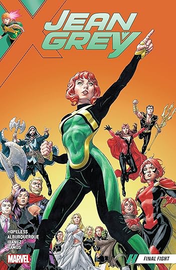 The young Jean Grey doesn't seem to know what to do with its protagonist except as prequel to the Pheonix Ressurection event. Hopeless has the ghost of the older Jean and the Pheonix force usurp her from her own narrative. While Scarlet Witch's distraction is interesting, it ultimately doesn't lead to much or have any real stakes. The high point is the development between Emma Frost, the spirit of Jean Grey, and young Grey which flashes back to the plot points in the Morrison and Whedon runs of X-men successfully. However, while this is interesting, it feels like a nostalgia play. Ibañez's illustrations are cartoony and clearly influenced by manga, but pretty much fall into Marvel house style.