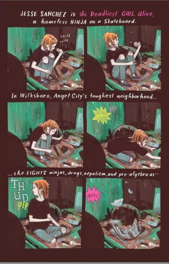"Orphaned by the world... raised by the streets... Jesse Sanchez is a kung fu master... and the world's greatest homeless skateboarder. In Wilkesborough, Angel City's deadliest ghetto... she fights ninjas, drugs, nepotism, and pre-algebra as... STREET ANGEL."