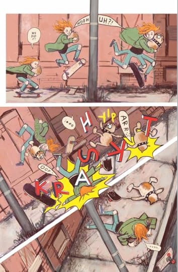 Sem najdu tale strip, k mam idejo risat svojo zgodbo o punci k skejta in mal gledam kako so se drugi loteval skejtanja v stripu. Ni sicer velik poudark na skejtanju, je dost bolj akcija in pretepanje...