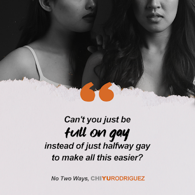 AJ Felipe is an interesting character and I'm proud to say that I learned a lot from her POV's and the author did a great job on writing down her thoughts and her views in life. I personally love on how it was distinguishably portrayed AJ as a bisexual, not just a lesbian or a straight person. Also, can I say that I love Jen so much? Her thoughts as the “token straight friend” from being the lesbian girl in high school says a lot that not everyone has the same experience, the same “phase” as everyone says.
