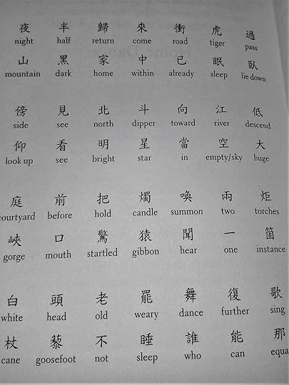 It doesn't have pinyin for the poems which is a weird choice for a book about poetry in Chinese translated into English for people who are probably not the best at speaking and reading Chinese and want to get a better grasp of the original way the poem might have sounded. Of course, it doesn't have an accurate guide for Tang Dynasty Chinese for the poems either.