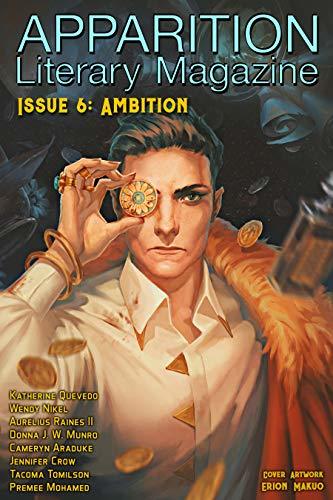 Welcome to the sixth issue of Apparition Lit! As the sixth issue of our magazine, our theme was Ambition. We wanted stories where people reached further and wanted more. Ambition can be a high-stakes corporate merger for honour and glory, other times it can be a smaller, more personal, goal. EDITORIAL *A Word from Our Editor by Amy Henry Robinson SHORT FICTION *Hermes VII by Donna J. W. Munro *Sasha's Pattern, Sonia's Edge by Katherine Quevedo *Juliet Silver and the Sea of Prosperity by Wendy Nikel *e-Lon 4 Breaks a Mirror by Aurelius Raines II POETRY *Naiad by Cameryn Araduke *The Muse Does Not Give a Fuck about Your Personal Safety by Jennifer Crow REPRINT *The Last by Premee Mohamed INTERVIEW *Artist Interview with Erion Makuo ESSAY *It’s Cute How Hard You Carol Danvers and Ambition by Tacoma Tomilson Apparition Lit is a quarterly speculative fiction magazine that features short stories and poetry. We publish original content with enough emotional heft to break a heart, with prose that’s as clear and delicious as broth. New issues will be published each January, April, July, October.
