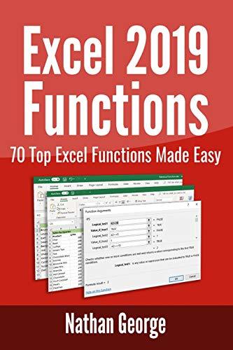 Excel 2019 Functions provides a detailed walkthrough of 70 of the most useful Excel functions, including many tips to enable you to maximize the power of Excel through the use of functions. This book provides a detailed description of each function, its arguments, and its use is demonstrated with fitting examples. Learn how to use functions like VLOOKUP, IFS, COUNTIFS, DATEDIF, NETWORKDAYS, FIND, NPV, SUMIFS etc. From simple calculations to building complex spreadsheets that require multiple formulas, knowing the right function to use can increase the accuracy and efficiency of your work. Learn new functions introduced in Excel 2016 and 2019 like the IFS functions that enable you to create more powerful formulas with less syntax. Excel 2019 Functions is a great reference guide for Excel functions whether you're a beginner or already competent with Excel. By the time you finish this guide, you will understand how functions work in Excel, how to find the right functions, and how to combine them in solving complex problems. This book comes with downloadable Excel practice files for all examples, so, you can follow the tutorials without needing to create the examples from scratch. In this book, you'll learn how Scroll up and click the 'Add to Cart' button on the right-hand side of the page to get started today!
