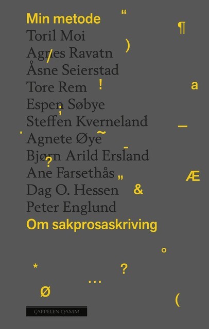 I samtaleserien «Min metode», arrangert av Norsk faglitterær forfatter- og oversetterforening, ble ti eminente sakprosaskribenter utfordret til å snakke om skrivearbeidet med en samtalepartner som kjenner bøkene deres svært godt. Tekstene i denne boka er basert på disse samtalene.
