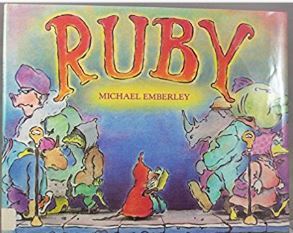 This story is a fractured fairy tail version of Little Red Riding Hood. I wasn't sure I was going to like this book until the end. It has a surprise twist, and readers will enjoy comparing it to the original. Ruby has a little bit of attitude which kids will like. And I really like the name "Ruby". Emberley is subtle, never mentioning "red riding hood" in the story. Readers will need to infer it by the pictures. Without giving the ending away, the readers must also draw more conclusions from the pictures and text at the end. While the pictures didn't particularly impress me, the overall story entertained.