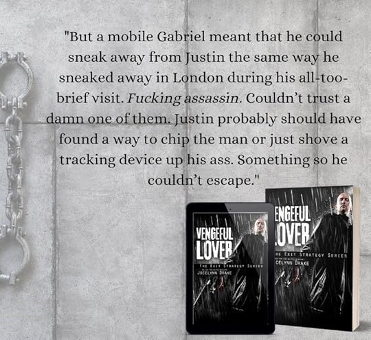 Vengeful Lover is the second book in the Exit Strategy series and it continues Justin and Gabriel's plans of getting out of the spy and killing business so that they can have a "normal life" together.