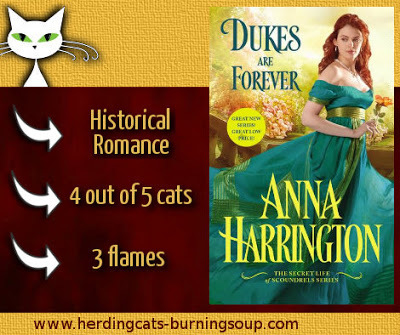 For a debut, I found Dukes Are Forever to be entertaining and worth my time. Anna Harrington's writing was clear and the plot was well-paced. While I didn't always agree with the characters' actions, they were well-written and their motives were explained. I am excited to check out more in this series especially after the interactions I read with Edward's friends, Nathaniel and Thomas, who will be getting books soon.