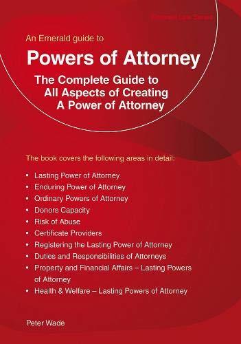 This book will enable the layman to understand the workings and the importance of Powers of Attorney. Lasting Powers of Attorney were introduced by the Mental Capacity Act 2005 and enables the person being the Donor to appoint another person to deal with their financial affairs if they become mentally incapable. LPA's cover financial matters, property matters and personal welfare issues. Personal welfare issues could include making of treatment or daily living decisions. The book will take you through all that you need to know to create and prepare and register a Lasting Power of Attorney. This is equally as important as having a Will.