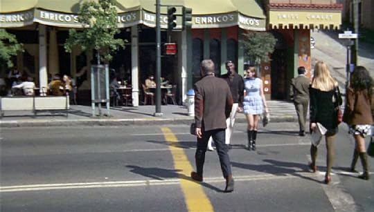 L’uomo di spalle che si dirige verso Enrico’s è Steve McQueen in “Bullit”.