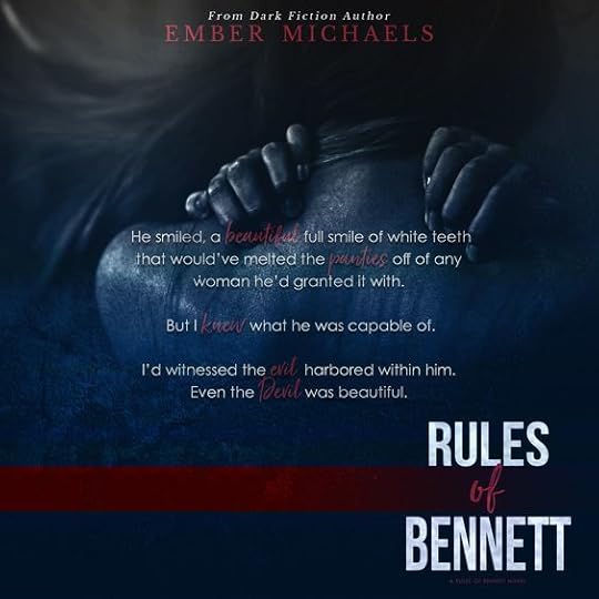 I always love discovering a new to me author, but what is even better is finding a debut author who is knocking it out of the park! When I first stumbled across a teaser for Rules of Bennett on my Social Media account over the weekend, I knew I was desperate to find out more about Ember Michaels. Dark Romance’s are sometimes hard to endure, depending on how strong your moral compass is, but when I find one I can actually make it through I am always fascinated by this genre. I have had to walk away from several over the years for taking it too far, but so far with Bennett I am simply in awe of this tortured, dark soul!