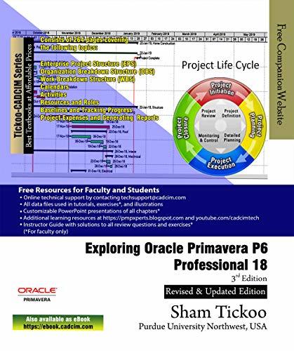 Exploring Oracle Primavera P6 Professional 18 textbook explains the concepts and principles of project management through practical examples, tutorials, and exercises. This enables the users to harness the power of managing projects with Oracle Primavera P6 for their specific use. In this textbook, the author emphasizes on planning, managing and controlling the projects, assigning resources and roles to a project, and producing schedule and resources reports and graphics. This textbook is specially meant for professionals and students in engineering, project management and allied fields in the building industry.