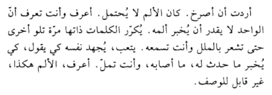 "أردت أن أصرخ. كان الألم لا يُحتمل. أعرف وأنت تعرف أن الواحد لا يقدر أن يُخبر ألمه."