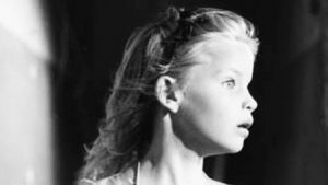 I looked at her closely for the first time. She had a long delicate face and large mournful eyes. Her fine brown hair was tied in bunches in red ribbon to match her red cotton dress. She was beautiful in a strange almost sinister way, like a girl in a Modigliani painting.