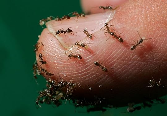 Photo of Argentine Ants on someone’s finger. If you daren't click the spoiler or have to scroll past fast, this story is definitely not for you.