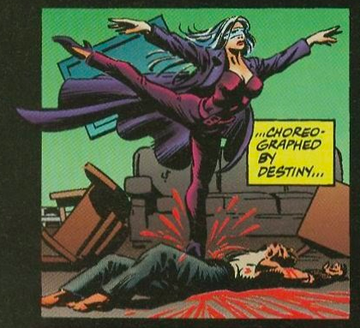Lady Justice is a vengeful spirit who possesses wronged females by means of a white blindfold and helps them get justice. She calls them her avatars. Imbued with the soul of Lady Justice, these women make Bruce Lee look like a wimp in hand-to-hand combat. They are experts with all kinds of weapons and are too healthy specimens with figures like super-models.