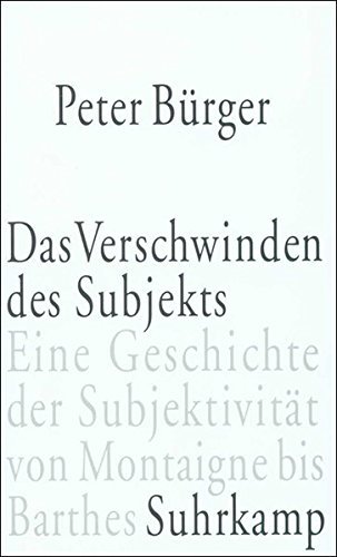 Bürger zieht es vor, vom Verschwinden des Subjekts zu sprechen, weil damit die Möglichkeit offenbleibt, daß das Subjekt aus seinem Verschwinden zurückkehrt. Während die bisherigen Arbeiten zu dieser Thematik entweder das Subjekt verabschieden oder es verteidigen, vermeidet Bürger eine solche vorgängige Ausrichtung, um sich statt dessen Texten von Montaigne bis Barthes zuzuwenden und zu fragen, ob sich an ihnen eine Geschichte der Subjektivität ablesen läßt. Was in einer Verlaufsgeschichte Anfang und Schluß wären, verschlingt sich im Ursprung des modernen Subjekts, so eine Konstellation bildend, die Bürger das Feld der modernen Subjektivität nennt und deren eigentümlicher Beständigkeit vom 17. bis zum 20. Jahrhundert die Studie nachgeht. Wohl aber stellt sich die Frage, ob es ein Außen des Feldes der Subjektivität gibt. Bürger sucht sie zu beantworten, indem er Selbstdarstellungen von Frauen daraufhin untersucht, ob an ihnen Spuren eines alternativen Entwurfs von Subjektivität erkennbar werden. Schließlich vermag Bürgers Geschichte der Subjektivität auch den Zusammenhang von Subjektivität und ecriture aufzuhellen.