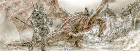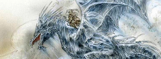 And when the ice dragon opened its great mouth, and exhaled, it was not fire that came streaming out, the burning sulfurous stink of lesser dragons. The ice dragon breathed cold. Ice formed when it breathed. Warmth fled. Fires guttered and went out, shriven by the chill. Trees froze through to their slow secret souls, and their limbs turned brittle and cracked from their own weight. Animals turned blue and whimpered and died, their eyes bulging and their skin covered over with frost.