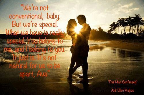 "We're not conventional, baby. But we're special. What we have is really special. You belong to me, and I belong to you. It just is. It's not natural for ust to be apart, Ava.... This is where you're supposed to be."
