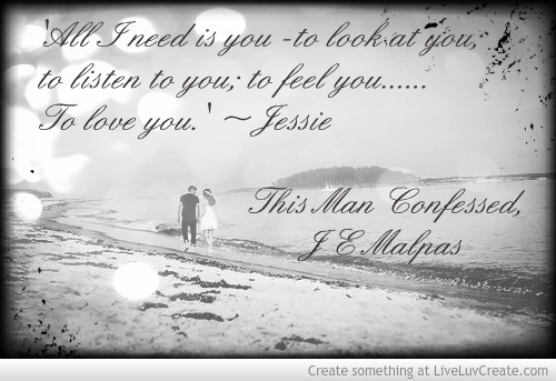 "You've taken me completely, baby. You've swallowed me up and drowned me in your beauty and spirit. You know I can't function without you. You've made my life as beautiful as you are. You've made me want to live a worthy existence -- a life with you. All I need is you -- to look at you, to listen to you, to feel you. To love you."