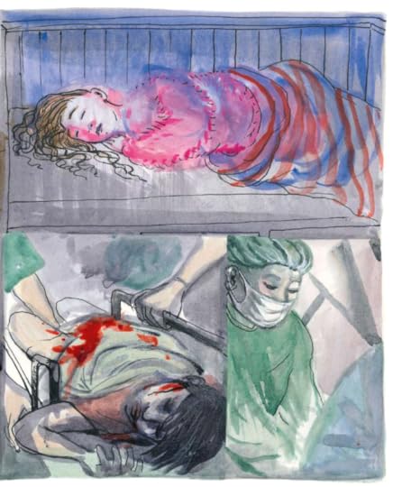A graphic novel about a surgeon who finds out that combining her job and her family is not easy and that she is also gradually bringing things with her from Syria. Traumatic things. I wasn't sure what the book would be about, but I still wanted to try it. The art looked very nice (almost unique for a GN) so I was more than happy to read it.