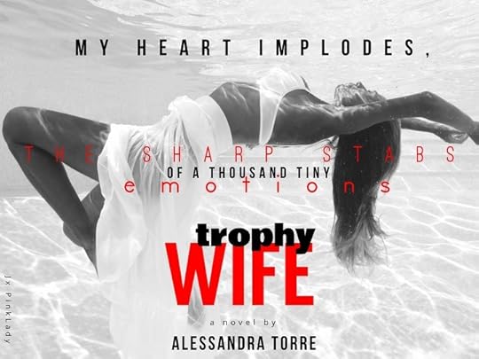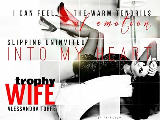 "Ecstasy. My body breaks into a thousand splinters of pleasure, a series of gasps spilling out, my back arching and pushing against his hard pelvis, our bodies joined as I am torn apart in a sea of desire."Told in dual POV, Trophy Wife is a compilation of Alessandra Torre's previous work The Dumont Diaries. This updated version includes Nathan's POV and a fresh ending to fulfill all of the questions that were left unanswered in the previous work. I thoroughly enjoyed every second of this read. I was a Nathan and Candy fan before but with the additional dialogue, additional moments of bliss, and the beautiful epilogue, I found myself overjoyed with this read. As the connection between Nathan and Candace transforms from physical to emotional and every piece of the plot is revealed I simply could not tear my eyes away.