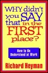 Ever get the feeling that your coworkers don't understand you? Misunderstanding through poor communication is rampant in the workplace, yet most workers just shrug their shoulders and accept misunderstanding as a fact of life. In Why Didn't You Say that in the First Place? , the author offers a path to clear communication by demonstrating how we can always reach full mutual understanding with others by using the power of plain talk in a systematic way. You'll It is full of anecdotes, illustrations, sample conversations, and checklists to show readers how misunderstandings can be prevented in everyday settings.