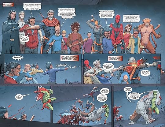 This companion piece to DCeased may even be better. It's about the people left behind when the heroes leave Earth. A group of villains along with some Batman sidekicks and orphans. Taylor really knows how to bring the heart out in a zombie apocalypse comic. It even survives some terrible art by Karl Mostert. He really tries hard to ape early Frank Quitely but with some very fugly faces and overly skinny bodies.