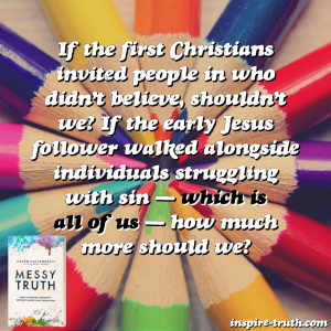 “If the first Christians invited people in who didn’t believe, shouldn’t we? If the early Jesus follower walked alongside individuals struggling with sin — which is all of us — how much more should we?” ~ Caleb KaltenbachWhile I disagreed with a few doctrinal teachings within Messy Truth, I still gleaned a lot of great information and wisdom. Convicting and full of tools to help us communicate with others (not just those within the LGBTQ community but everyone we encounter), this will be a book I will resort to again and again! The LGBTQ community is becoming more inclusive by the day; meanwhile, the church/congregations are becoming more closed in an attempt to prevent their fellowships from being “exposed” to the “agenda” of this world. This reality is heartbreaking and ungodly!