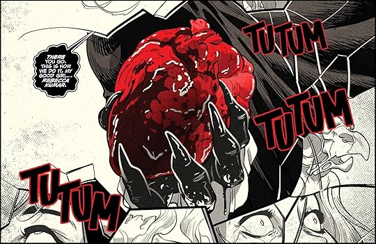 One day Becky is living a normal life with her friends. But that is shattered when a whole world of myth and magic rushes in, and literally steals her heart. Now in a race to reclaim it, she is set on a path where she will discover her own magical heritage. Bucci and Camagni draw from several mythological traditions and stories, including Greek mythology, Shakespeare, and Celtic lore. Designs for the mythical characters play up the stereotypical images readers have of them. King Taranis is a hot dark Seelie figure, while Lady Macbeath has a gnarled face, and dead-eyed look. Nudity is in full view. The illustrations as a whole are stunning. Colour has a specific role in Nomen Omen. Vibrant hues denote dreams, magic and the magical world, while shades of gray, black and white dominate the mundane and physical forms. This also doubles as lens which allows readers to see the world as Becky does. Her achromatopsia affects her real world vision. Nomen Omen is namely held back by it's lack of exposition at the beginning, and several other parts which cause confusion. These namely come down to paneling choices, not the dialogue. The lore, and plot itself, are thrilling and fantastical. And, with a delicious grab bag of emotions fueling the characters, the determined reader will be rewarded with drama, and more of the art as they progress. This is one of the most visually brilliant comics currently out there, and for that alone it is worth reading. Hopefully, the brilliance of it's story will be more clearly conveyed in later volumes.