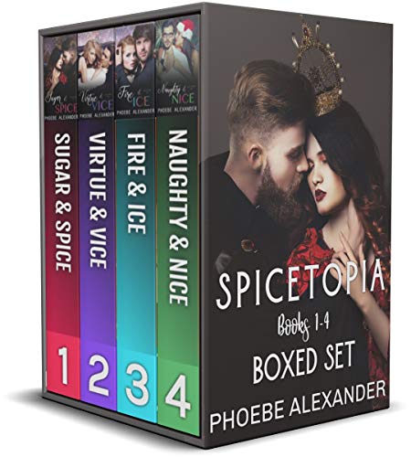 Spicetopia Boxed Set Books 1 - 4 By Phoebe Alexander ☆ ☆ ☆ ☆ ☆ 4 fantastic full length novels. They are hot and spicy. Not for those under 18. Due to adult content. Please read in order to watch Spicetopia grow and the characters run through the books. So fun to follow along. 1.Sugar & Spice 2 .Virtue & Vice 3. Fire & Ice 4. Naughty & Nice