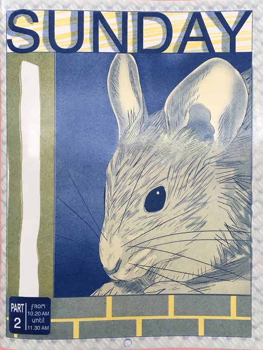 This is part 2. All artworks by Olivier Schrauwen. Published and printed by Colorama. 68 pages, A4, risoprinted in federal blue and sunflower, saddlestitch-bound. First edition of 600 copies.