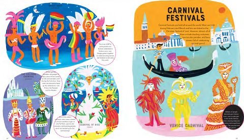 I like the way the authors have split the festivals into four seasons. They do mention that the seasons vary, depending where you live, but the descriptions and illustrations depict the seasons in the northern hemisphere, which is where about 90% of the world’s population is.