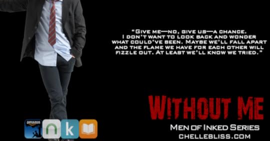 This story is bittersweet as it's the end of the story of the great Gallos, who I fell in love with from the very first book and was sucked deeper into the family folds with each new novel. Like the rest of the Men of Inked series, Without Me is pure addiction. Chelle Bliss writes books for the tattooed-alpha loving book whore, and the Men of Inked series is my crack...my fix...and I'm going to have a hangover for a long time...maybe forever.