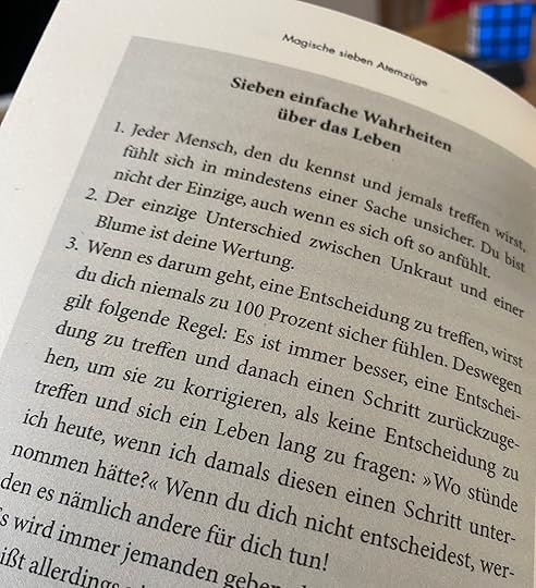 Was ein Samurai kann, das will ich auch - mich in sieben Atemzügen für/gegen etwas entscheiden. Einer der Ratschläge, welcher sich wie ein roter Faden durch das Buch zieht und mehr mit einem machen kann, als man denkt. Ich habe "It`s all Good" vor mehreren Jahren als Geschenk erhalten und vor einigen Tagen in einer Umzugskiste (wieder)entdeckt. Meine Entscheidung hat wohl auch nicht mehr als 7 Atemzüge gedauert, dass vielleicht jetzt der richtige Zeitpunkt wäre, diesem Buch eine erste Chance zu geben.
