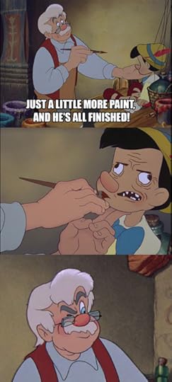 So once upon a time there was this really messed up story about a wooden puppet named Pinocchio who went on this weird journey with a cricket for a conscience, met the devil, got vored by a whale, met a fairy whose only remarkable feature was that she was blue, and then became a Real Boy.